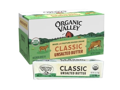 商品規格︰454g/內4條裝 ●乳脂含量達84%以上,奶素可食用 ●無抗生素、無人工合成激素、 無防腐劑 ●通過HALAL(清真)及Kosher(猶太)的認證。 ●非基因改造 ●100%的純正有機牛乳